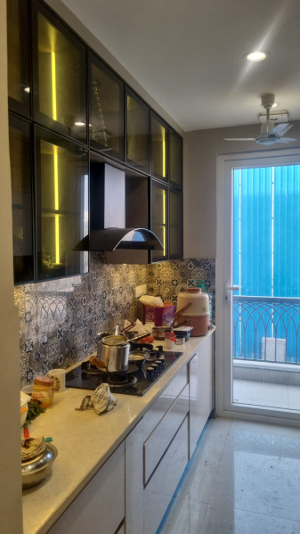 The flat features 3 well-appointed bedrooms, each with an attached bathroom, making it ideal for families or individuals looking for a modern living space. The property has been newly constructed and is furnished with tasteful interiors, adding to the overall appeal of the space.